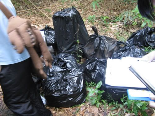 We helped to weigh the rubbish that we collected because we were the first group to finish the collection! Yeah manzxc. (V) We rock- Li Ying, Jasmine and me. :)